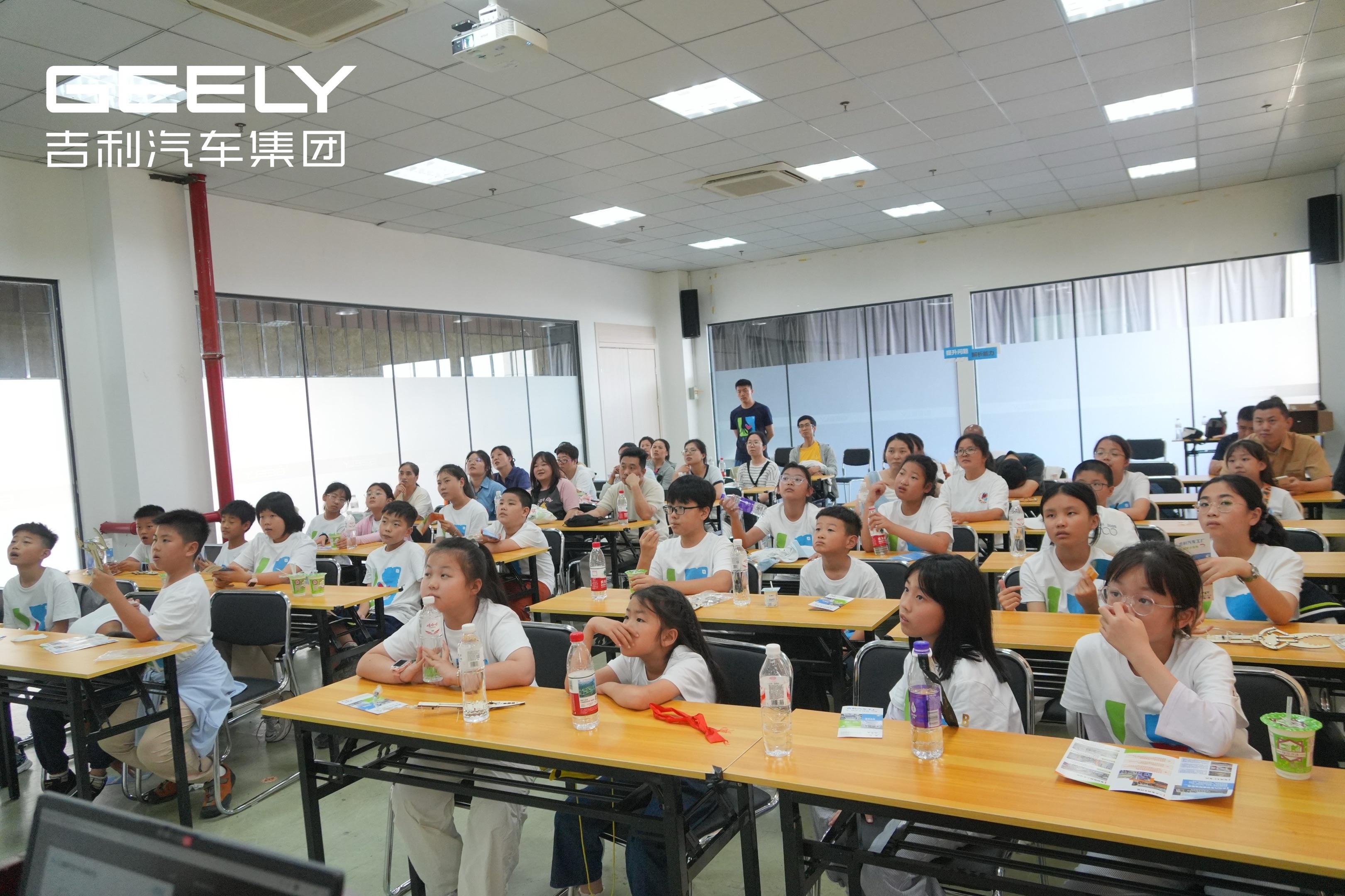 志愿者们带领孩子们走进位于杭州钱塘区的吉利汽车基地,开启了一场充满科技魅力的探索之旅。孩子们系统学习了汽车发展历史及智能化工业知识,走进冲压、焊接与整装车间,亲眼目睹钢板如何在千吨压力下精准成型,感受智能制造带来的震撼。